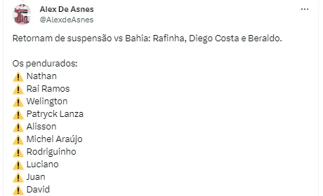 “É uma possibilidade real de grana para o São Paulo na virada do ano. Patryck Lanza está terminando os últimos processos para adquirir um passaporte italiano. Dessa maneira, ele não ocupa a vaga de europeu atuando no futebol europeu”, completou Nicola.