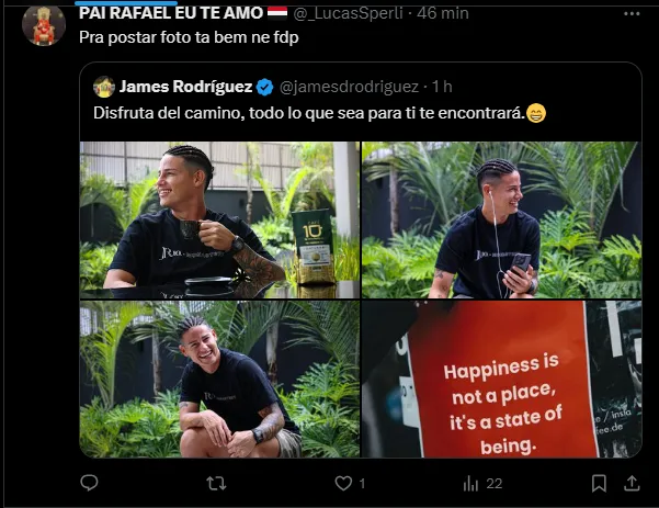 Nesta sexta-feira (9), James postou uma série de fotos sorrindo com a legenda: “Aproveite a estrada, tudo que é para você vai te encontrar“. Além disso, outra frase gerou um debate nas redes sociais.
