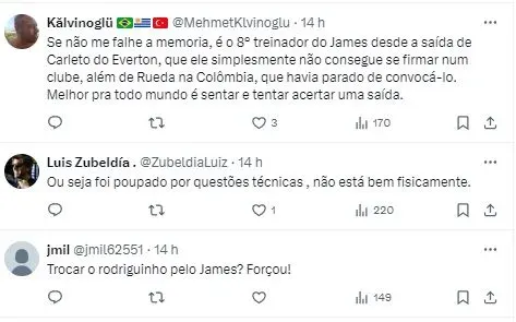 Zubeldía foi bastante transparente ao explicar por que deixou James de fora. Sem rodeios, explicou que o jogador está abaixo do esperado, atrás de companheiros do elenco, que no momento, merecem mais chances que o badalado e polêmico atleta.