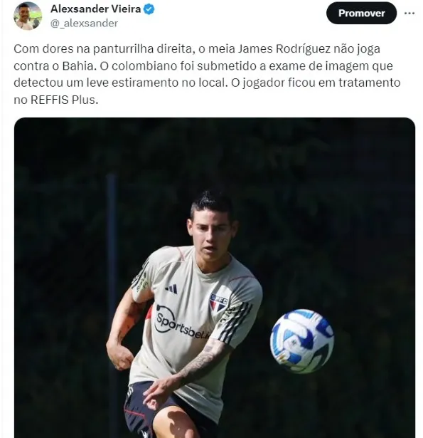 James Rodriguez está FORA de próximo jogo do São Paulo e motivo pode ser ainda mais preocupante