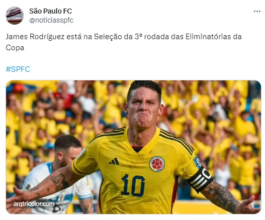 Mas se por um lado o desempenho no tricolor não é dos melhores, parece que ao vestir a camisa da seleção colombiana James Rodríguez se transforma. O meia brilhou no empate de 2 a 2 entre Colômbia e Uruguai pelas eliminatórias para a Copa do Mundo, inclusive fazendo gol e dando assistência. Essa boa atuação fez a alegria dos tricolores, que agora aguardam o retorno do craque com o otimismo que ele repita no São Paulo o mesmo bom futebol da seleção.