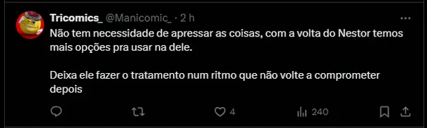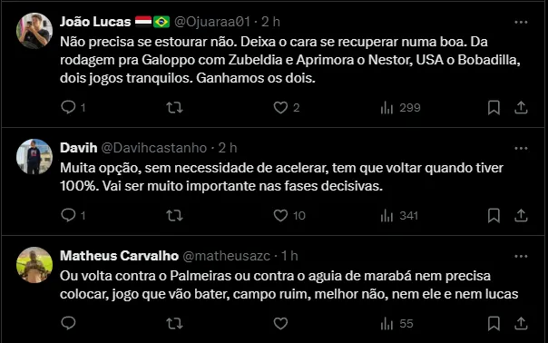 Ainda conforme publicado pelo Felipe Ruiz, James Rodríguez espera estar disponível no clássico diante do Palmeiras. Caso não tenha tempo, almeja retornar na Copa do Brasil, contra o Águia de Marabá.