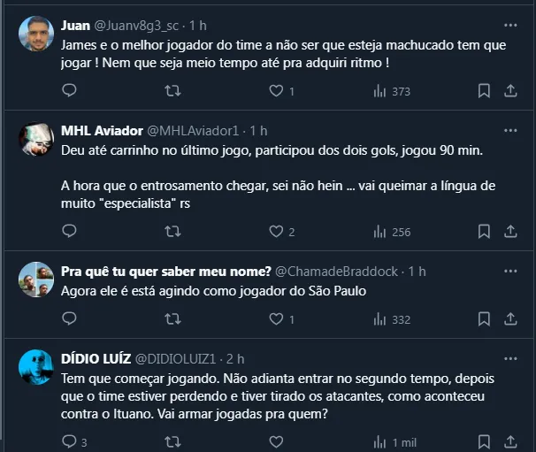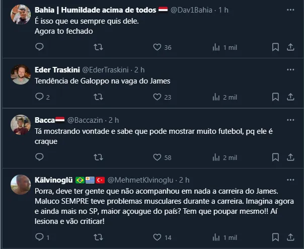 Enfim, para a estreia no Brasileirão, a tendência é que James Rodríguez comece a partida no banco de reservas. O colombiano foi titular nos últimos dois jogos e sequer seria relacionado, mas ele mesmo pediu para estar na relação e a torcida aprovou.
