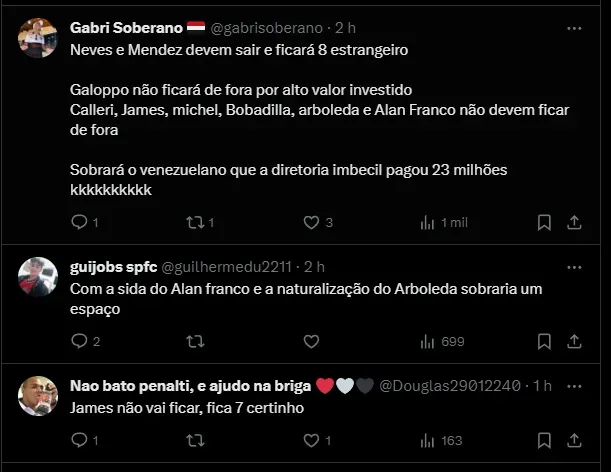 Com a chegada de Dorival, a situação piorou, Méndez somou poucos minutos com o treinador. Jhegson troca de agentes e visa jogar no futebol europeu, de acordo com o GE.