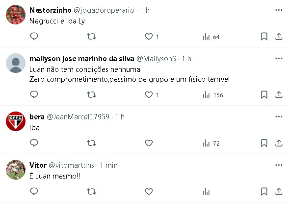 Apesar das negociações em curso, Luan permanece integrado ao grupo de jogadores do São Paulo, participando normalmente das atividades diárias sob o comando de Thiago Carpini.