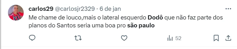 Com a chegada do treinador, o São Paulo pode fazer novos movimentos no mercado da bola e um jogador do Santos ‘surge’ no noticiário do Tricolor Paulista: trata-se do lateral-esquerdo Dodô.