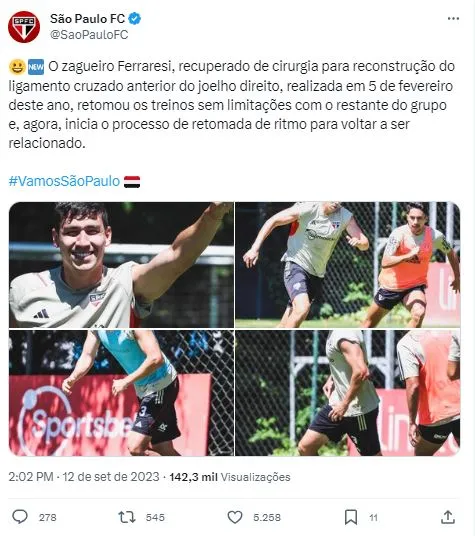 O foco tal está na disputa da Copa do Brasil, porém, se conquistar o título inédito, já carimba a classificação para a Copa Libertadores, o que muda totalmente a postura do clube no mercado: “Falei bastante com o pessoal do São Paulo e claro o foco total é na questão do jogo com o Flamengo, na decisão, a partir de domingo, da Copa da Brasil. O plano para 2024 começa a ser traçado, mas ele depende muito do que vai ter para o ano que vem“, iniciou.