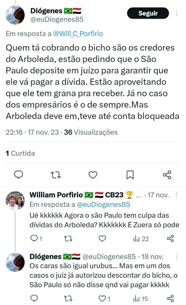 Uma das dívidas de Arboleda está no valor de R$ 968 mil, sendo assim o São Paulo questionou a Justiça que determine para onde devem ir as verbas que deveriam ser pagas a Arboleda.