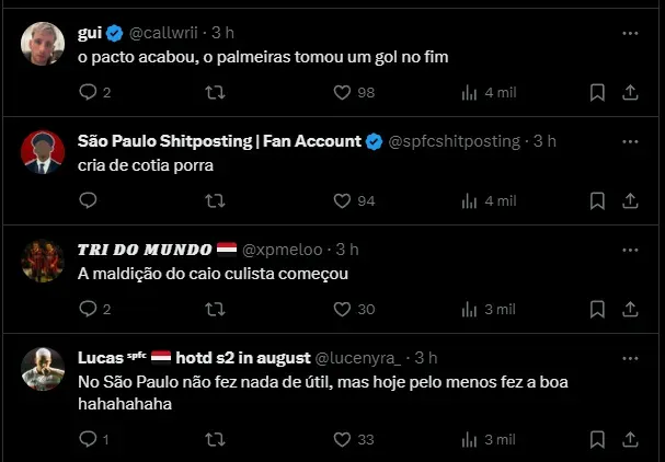 Nas redes sociais, torcedores ‘comemoraram’ o gol de Willian Farias no jogo contra o Palmeiras, compartilharam fotos enquanto o volante ainda estava no Tricolor Paulista.