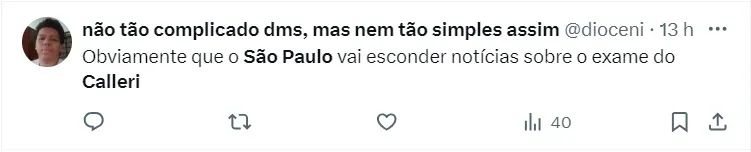 Calleri, do São Paulo, passou por exames com objetivo de qualificar a condição física do jogador visando as quartas de final do Campeonato Paulista. Isso porque, o objetivo é que o jogador esteja 100% no confronto.