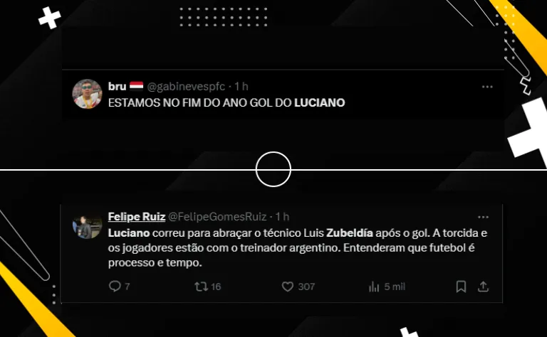 “Luciano correu para abraçar o técnico Luis Zubeldía após o gol. A torcida e os jogadores estão com o treinador argentino. Entenderam que futebol é processo e tempo“, comentou um torcedor logo após o gol. “Eu gostei dessa atitude dele, o apoio é essencial nesse momento“.
