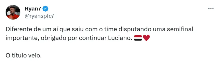 “Eu tenho contrato, o Luciano tá aí. A não ser que o presidente me empreste ou me venda. Quando veio a proposta, eu fiquei sabendo e até meu empresário ficou bravo comigo. Mas eu tenho contrato até o ano que vem e espero cumprir”, disse o jogador. Nas redes sociais, torcedores do São Paulo comparam a situação de Luciano com a de Róger Guedes, que deixou o Corinthians e foi para o Catar.
