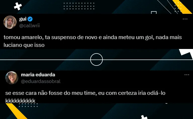 Dos 10 cartões amarelos que o jogador levou até o momento na temporada, metade deles foram por indisciplina de Luciano. Aliás, as últimas quatro punições foram por conta disso, todas pelo Campeonato Brasileiro. Segundo as súmulas das partidas, o camisa 10 Tricolor foi advertido por discutir com rivais contra Fluminense e Corinthians, além de reclamar da arbitragem contra Criciúma e Bahia.