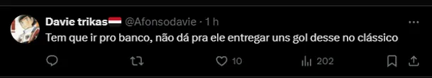 “Luciano e Jandrei os piores em campo“, foi o comentário de um torcedor que também não gostou da partida do goleiro. Alguns são-paulinos até pediram falta no lance, mas nada foi marcado pelo árbitro do Majestoso.