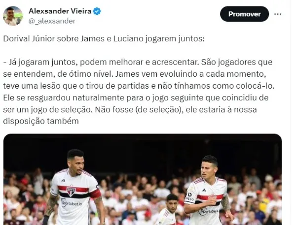 Segundo apurou o Bolavip Brasil, Dorival quer ter Calleri, Luciano, James Rodriguez e Lucas Moura na pré-temporada, visando tentar achar diversas possibilidades para que os quatro consigam atuar juntos.