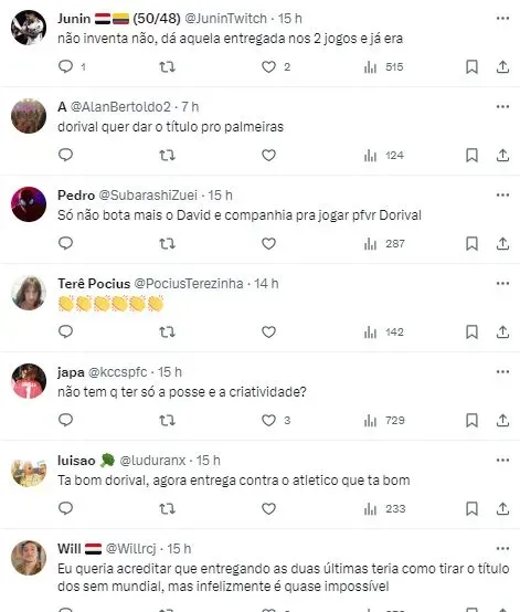 Entregar o jogo para complicar o Palmeiras, não está nos planos de Dorival: “A motivação é a mesma de sempre. Buscando o melhor resultado possível. Respeitando muito Atlético-MG e Flamengo, nossos dois adversários. O trabalho segue. É uma sequência natural, normal”, iniciou.