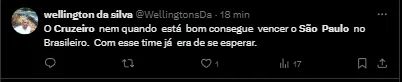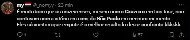 O camisa 10 comentou que esse resultado não foi fácil de absorver, pois o Cruzeiro jogou bem e poderia ter saído do Morumbi com um resultado melhor, pelo futebol que apresentou, mesmo com um jogador a menos, com a expulsão de Marlon.