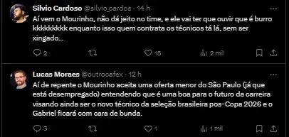 Um nome que chamou a atenção de todos pelo peso que ele tem no futebol foi o do português José Mourinho. De início, tudo teria começado como um pedido da torcida tricolor, mas a situação teve atualização.