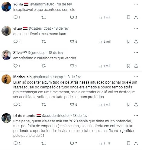 Porém, existem outras pontas soltas par serem solucionadas no elenco comandado pelo técnico Thiago Carpini. Uma delas está relacionada ao futuro de Luan, que está prestes a deixar o São Paulo.