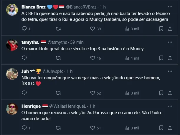 Entretanto, assim como já havia feito nos tempo em que comandou o Fluminense, Muricy Ramalho disse não à Seleção Brasileira. Em entrevista concedida ao GE, o ex-treinador negou prontamente.