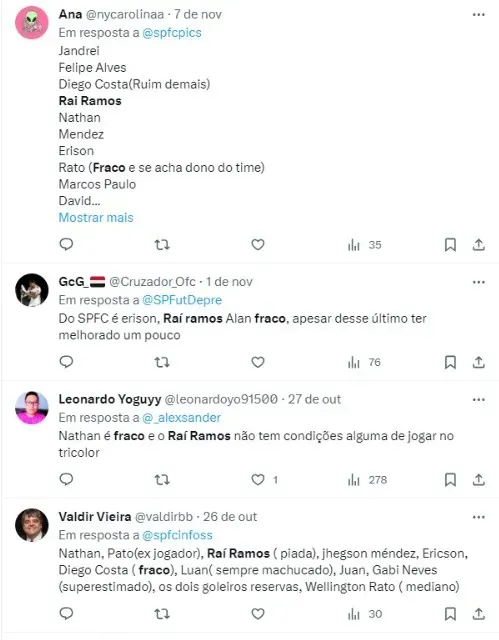 Quem entra nessa lista, por exemplo, é uma contratação feita por Julio Casares nesta temporada, mas que não conseguiu vingar: Raí Ramos. Neste momento, o lateral está no fim da fila e sem moral com Dorival.