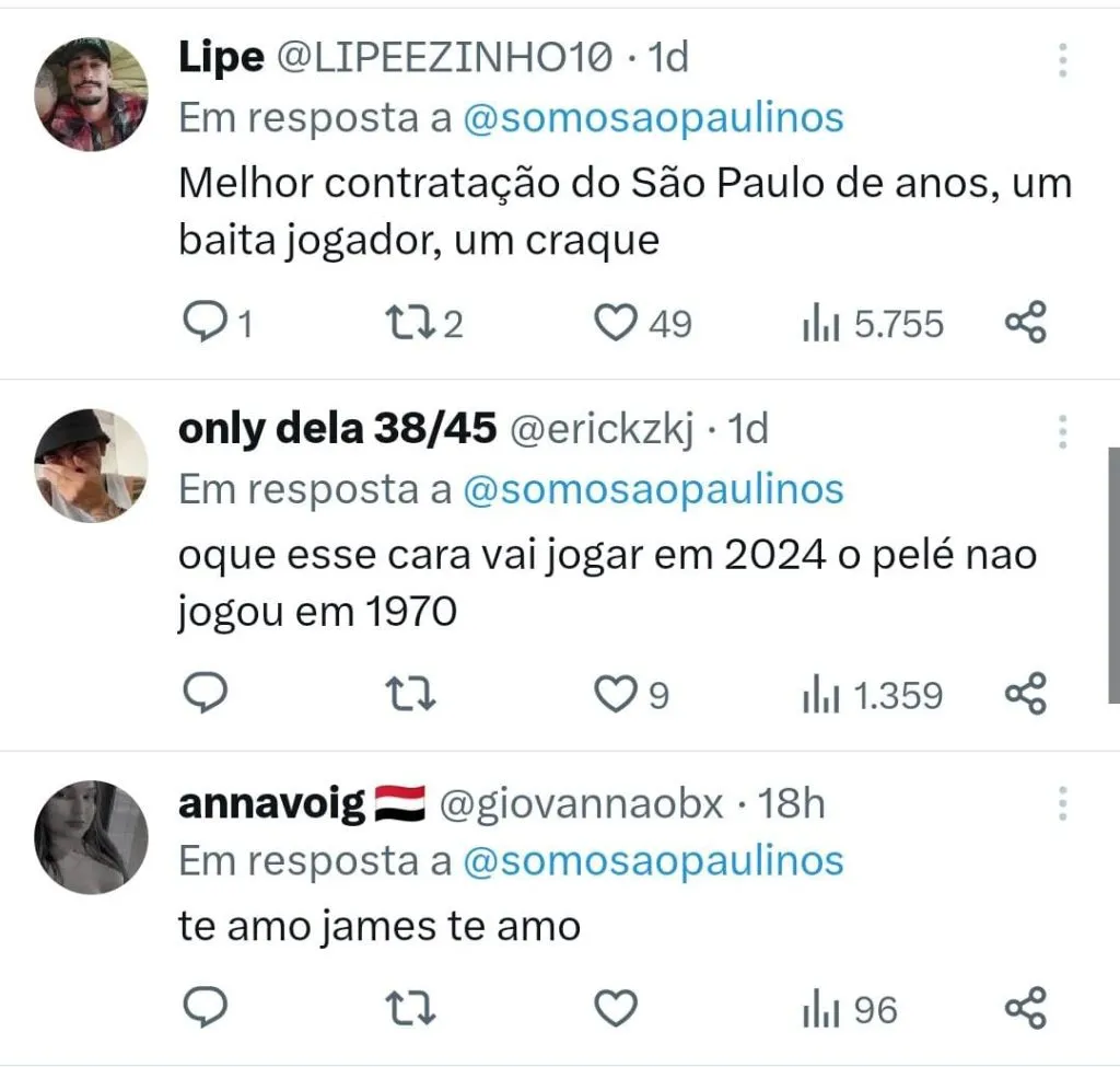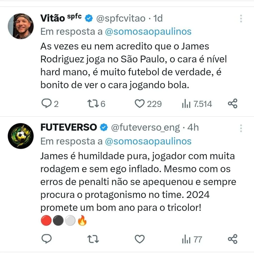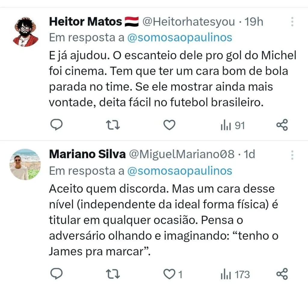 “Mas ele (James) foi muito solícito, foi muito profissional. O James é um cara de uma educação ímpar, diferenciada. Entendeu o momento da equipe, entendeu que a equipe estava num processo de acerto, vinha crescendo, e eu não poderia ser desleal com quem estava naquele momento atuando”, disse.