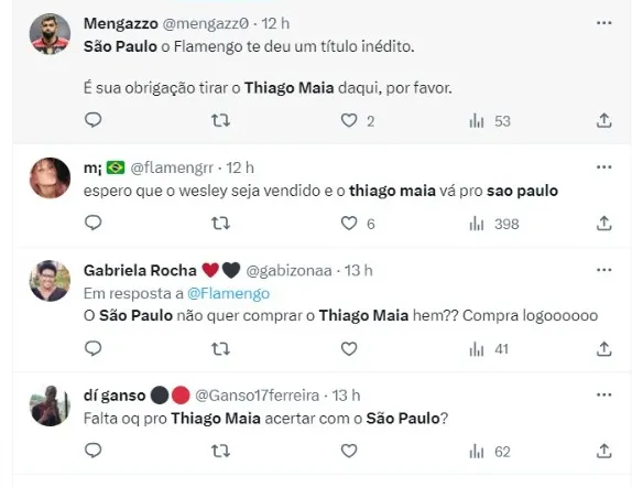 Um dos nomes que foram aprovados internamente no Tricolor foi Thiago Maia, que se destacou ao ser treinado pelo atual comandante são-paulino nos tempos de Flamengo em 2022. Porém, a negociação, que já era considerada difícil, agora vem sendo tratada como 100% descartada, especialmente depois da troca de técnico no Rio de Janeiro, mesmo que os torcedores por lá tenham feito muitas críticas ao atleta.