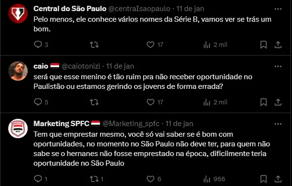 “Se o Calleri sai do jogo, quem tem o poder de segurar a bola? Não tem. Na base tem bons jogadores, como o 9, o menino Talles Wander. Fez gols na Copinha, mas não tem contrato. Não tem contrato, não sobe. Acho que a diretoria está certa nesse sentido”, disse Ceni, dias antes da renovação de contrato.