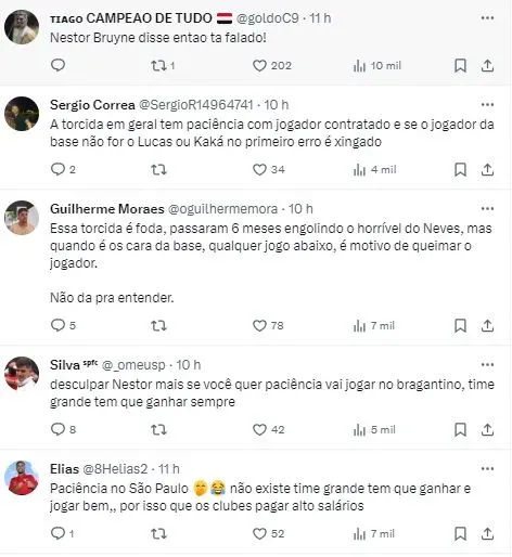 Nestor também fez um pedido para a torcida, batendo na tecla de que atletas promissores podem deixar o São Paulo por conta da falta de compreensão da massa Vermelho, branca e preta.