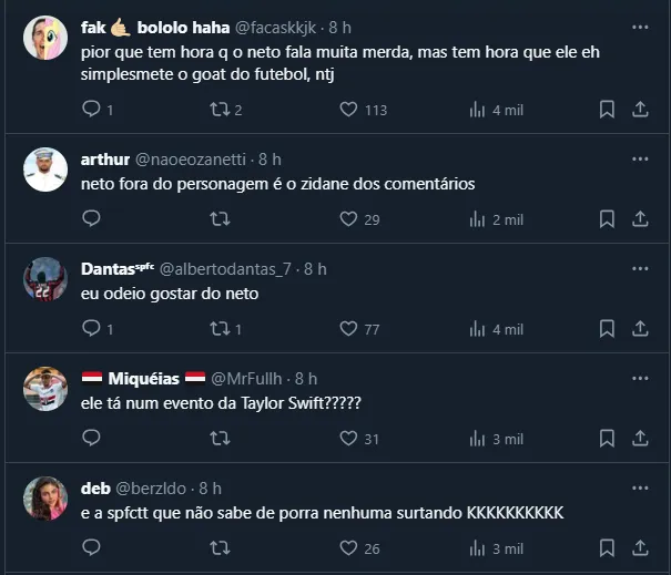 Dessa forma, após oficializar o acordo com o jovem técnico de 39 anos, o assunto repercutiu bastante na torcida tricolor, que se dividiu. Entretanto, Neto, apresentador e ex-jogador, resolveu dar a sua opinião nas redes sociais sobre a decisão do SPFC.