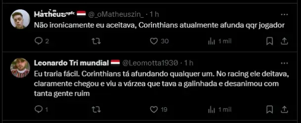 É claro, a torcida do São Paulo reagiu com bom humor, boa parte até aceita uma possível contratação de Rojas: “não ironicamente, eu aceitava! Corinthians, atualmente, afunda qualquer jogador“, comentou um são-paulino.
