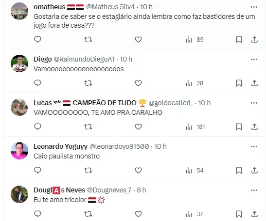 Muitos torcedores comentaram na publicação do Clube “o impossível aconteceu”. Outro são-paulino já quer férias para os titulares e que coloque os meninos da base para jogar: “Agora pelo amor de Deus, vamos botar a molecada nesse final. Igual fez com o CSA em 2019, é Sub-17 nesses dois jogos. E que venha 2024”.