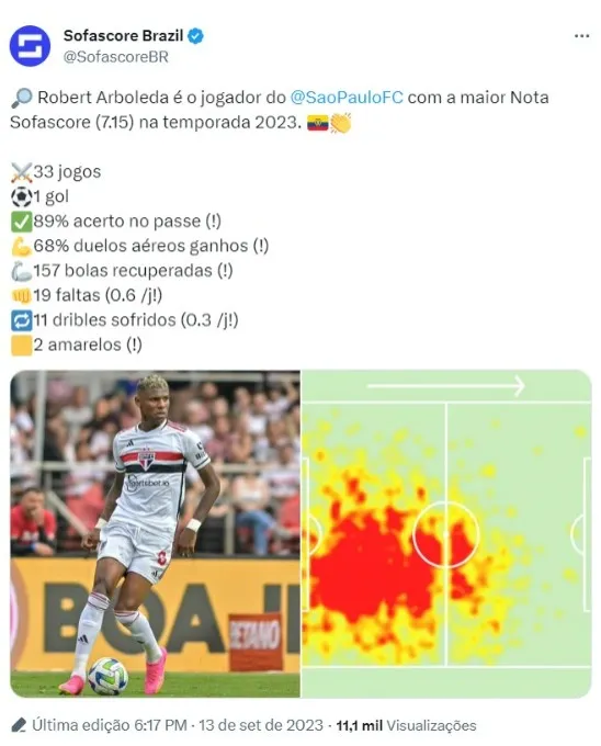 O São Paulo vive um bom momento na temporada e agora tem o foco voltado para o retorno do Brasileirão e consequentemente Copa do Brasil. Como uma das bases da equipe, Arboleda teve a melhor nota pelo Tricolor Paulista na temporada até o momento.