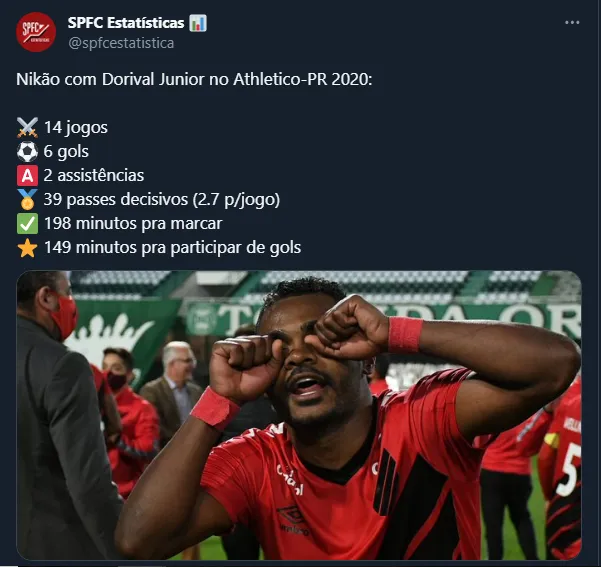 Dessa forma, vale a pena frisar que Nikão não chegou a trabalhar junto com Dorival Júnior no SPFC e pode ser útil ao treinador no ano que vem. Afinal, ele alcançou números impressionantes com Dorival no passado.