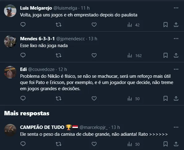 Em contrapartida, um nome que chegou em 2022 e não correspondeu às expectativas foi o meia Nikão. Após inúmeras temporadas se destacando pelo Athletico, ele acabou desapontando pelo SPFC e foi emprestado ao Cruzeiro.