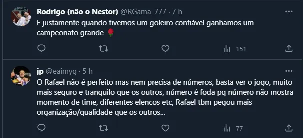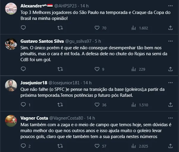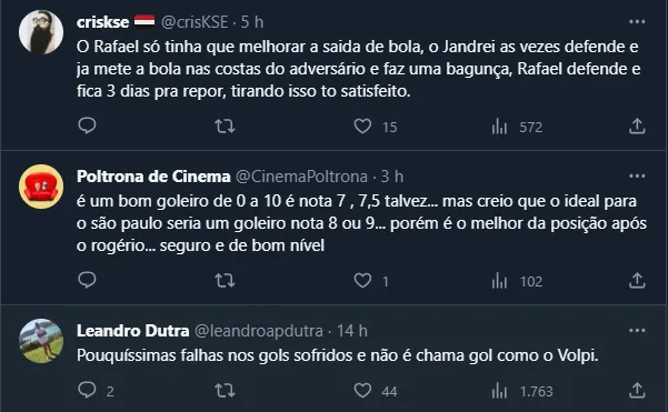 Até por isso, o camisa 23 vem ganhando cada vez mais moral com a torcida do SPFC, por finalmente estar espantando o “fantasma” de Ceni. Só a título de comparação, o número de jogos sem sofrer gols de Rafael é quase o dobro de Jandrei no ano passado (14 em 43 jogos) e o mesmo de Volpi em 2021, mas com 8 jogos a menos.