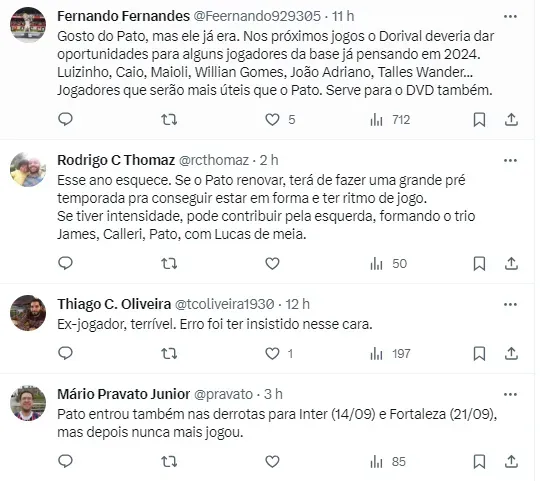 A última vez que Pato jogou foi na derrota para o América-MG por 2 a 1, onde o atacante marcou o gol de rebote após cobrar pênalti e o goleiro defender. De lá para cá, já ficou de fora de 14 jogos do Tricolor.
