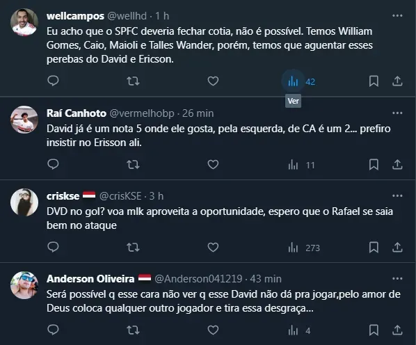 Até por isso, como a provável escalação do Tricolor do Morumbi conta com David entre os titulares, vários torcedores do São Paulo se manifestaram contra a presença do jogador no 11 inicial.