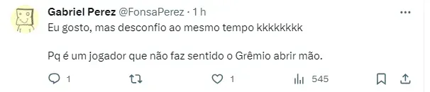 Outra torcedora acabou seguindo a mesma linha: “Eu gosto muito dele como jogador, seria uma boa contratação”, pontuou. Houve ainda quem disse que ele parece ter o perfil do time: “Ele tem cara do Trikas”, afirmou outro usuário.