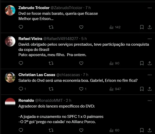 Em números, David não será lembrado pela torcida, foram 39 jogos, cinco gols e três assistências. Entretanto, diante de todas as circunstâncias do gol contra o Palmeiras, o atacante tem o carinho do torcedor.