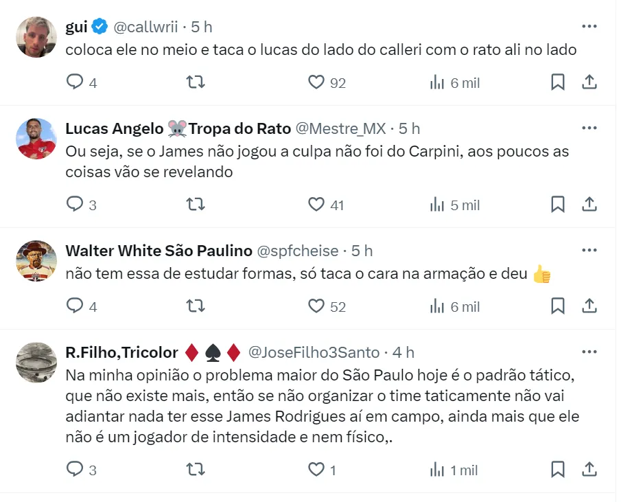 Com isso, o ressurgimento de James Rodríguez é uma arma para o treinador recuperar o bom o futebol da equipe e voltar a ter paz no comando da equipe são-paulina para o restante do ano.