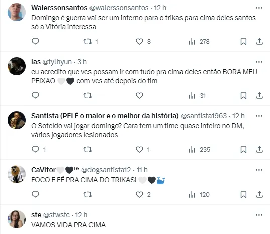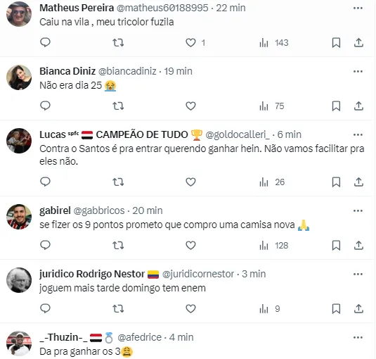 A expectativa dos torcedores de Santos x São Paulo nas redes sociais é…