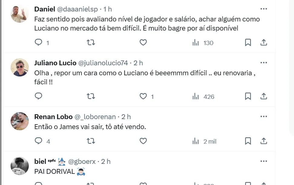 Há expectativa de proposta na próxima janela de transferência. Sinal de adeus no São Paulo? Negativo! De acordo com informações do setorista Rafael Emiliano, Dorival pediu à diretoria para que Luciano fique.