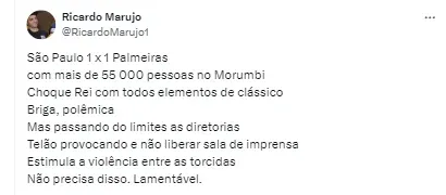 O clima entre as torcidas também ficou hostil nas redes sociais. Vale destacar que nas redes sociais, o Soberano provocou o rival após o título da Supercopa, assim como o que aconteceu em outros duelos.