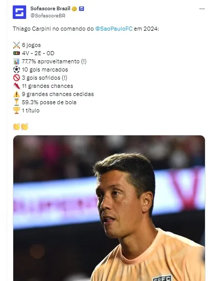 Nesta quarta-feira (7), o time do Morumbis venceu por 3 a 0, com isso, são seis jogos invictos do novo treinador, sendo 4 vitórias, dois empates e um título da Supercopa.