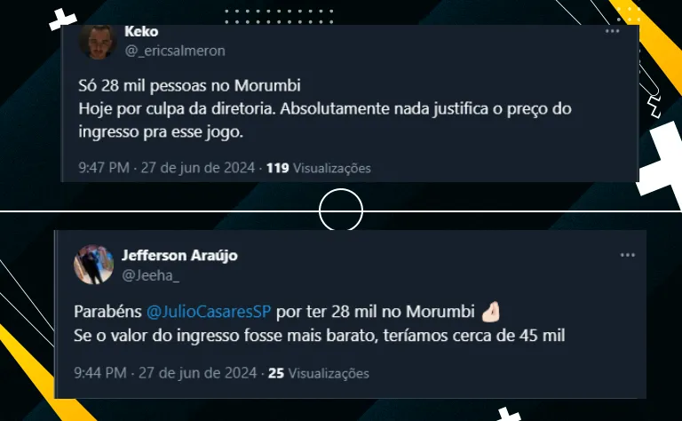 Além do horário, o principal fator que “afastou” os são-paulinos do estádio foi a mudança na política de preços de ingressos. O presidente Julio Casares resolveu aumentar os valores desde o jogo contra o Cuiabá.