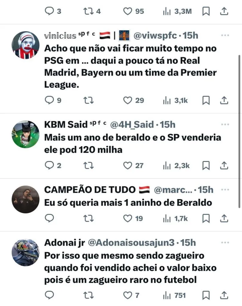 Obviamente, houve muita repercussão entre os torcedores do Soberano nas redes sociais, que comentaram que se continuar desse jeito, o atleta não vai ficar muito tempo no futebol francês: (SIC) “Não vai ficar muito tempo no PSG. Ele tem as características necessárias de Premier League e Real Madrid. Qual o destino , não sei”, disse um são-paulino.