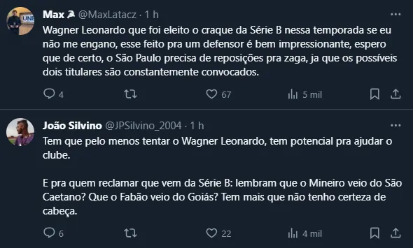 Já no caso do segundo, é importante frisar que o Menino da Vila foi oferecido ao Tricolor, visto que realizou uma excelente campanha com o Vitória, na Série B. Sobre o tema, o torcedor do São Paulo se dividiu, mas muitos aprovaram o nome.
