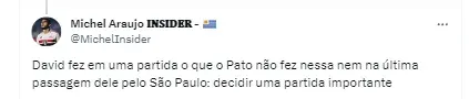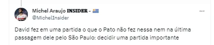 “Para não fazer com que a folha estore, o São Paulo tem uma missão negociar alguns atletas que não vem sendo tão utilizados pelo técnico Dorival Júnior. Já citei para vocês que o goleiro Felipe Alves, o lateral-direito Nathan, o volante Jhegson Mendez, e os atacantes Pato e David não permanecem para 2024. Hoje, o São Paulo tem a sexta maior folha do futebol brasileiro, algo na casa dos R$ 15 milhões. Essa folha teve um acréscimo importante com a chegada do Lucas Moura e do James Rodríguez. A ideia do São Paulo é não ultrapassar os R$ 17 milhões na temporada”, completou Nicola.