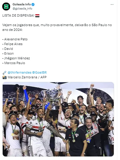 Já pensando na próxima temporada, o Clube ainda quer acertar algumas situações para o ano que vem. A ideia é reforçar ainda mais o elenco visando as competições que o time terá em 2024. Com o título da Copa do Brasil, o São Paulo se classificou para a Supercopa do Brasil e para a Libertadores. Além das contratações, saídas vão acontecer. De acordo com Jorge Nicola, cinco saídas foram confirmadas no Morumbi.